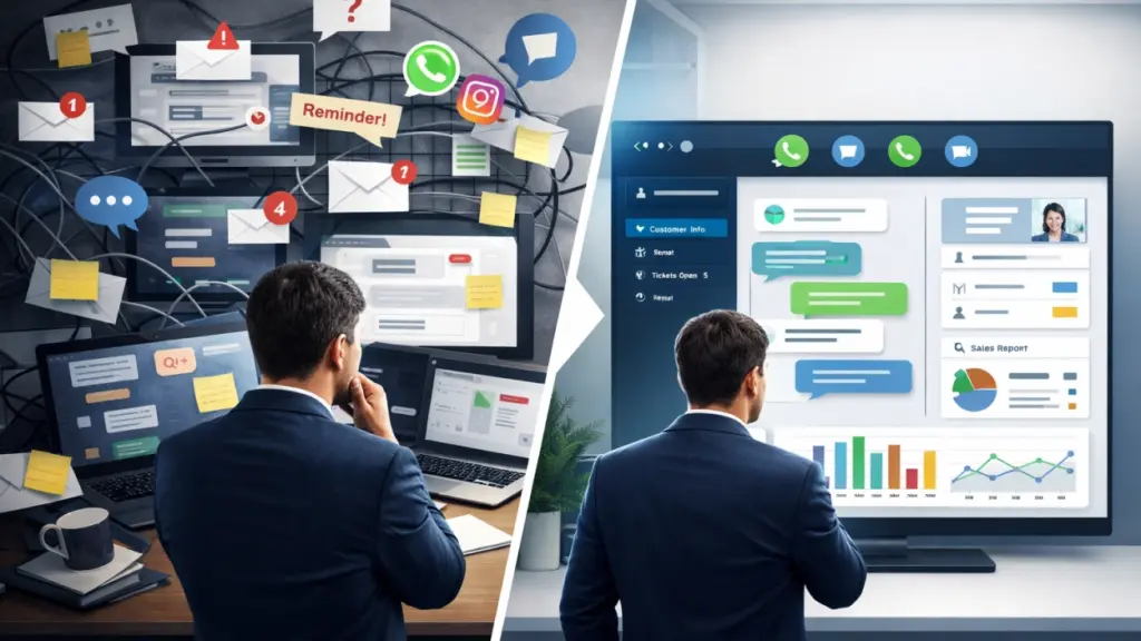 No começo, o atendimento “vai”. Todo mundo fala. O cliente manda mensagem e alguém resolve. O histórico fica na memória e isso parece eficiência. Até que a empresa cresce. Mais leads, vendedores, canais. Mais cobrança por resultado.